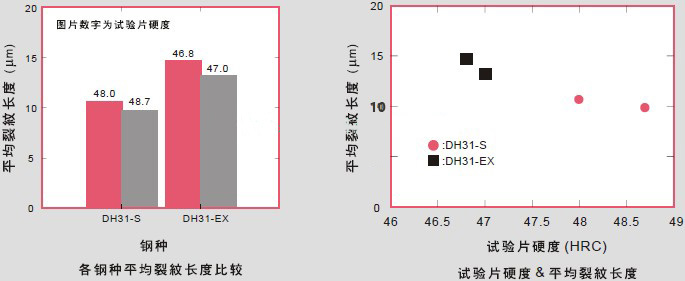 各鋼種平均裂紋長(zhǎng)度比較 試驗(yàn)片硬度&平均裂紋長(zhǎng)度